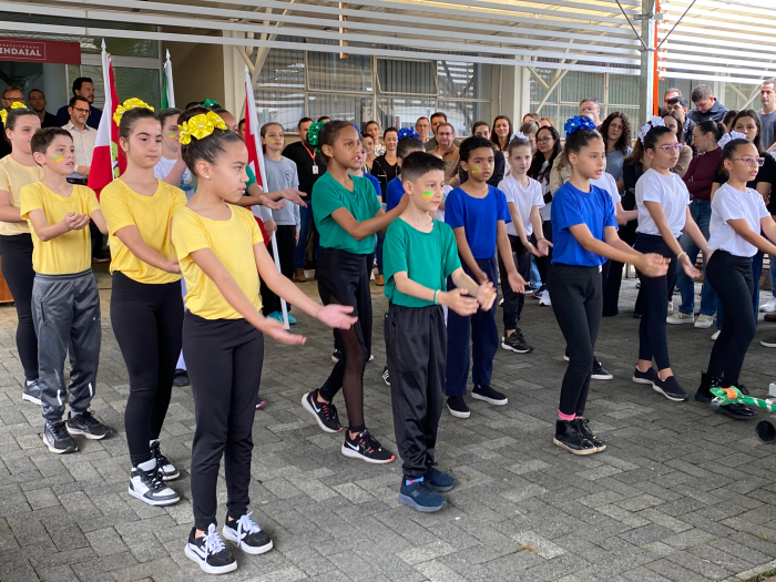 O evento teve início com o hasteamento das bandeiras do Brasil, Santa Catarina e Indaial ao som do Hino Nacional. Em seguida aconteceu a apresentação dos alunos do Colégio Metropolitano apresentaram a música “Meu País”, sob coordenação da professora Emily no violão.