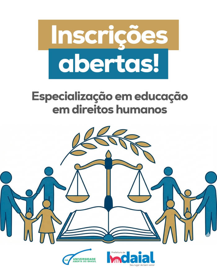 O Instituto Federal de Santa Catarina (IFSC) está com inscrições abertas, até o dia 23 de fevereiro, para a Especialização em Educação em Direitos Humanos, ofertada na modalidade 100% a distância (EaD). O curso conta com 40 vagas destinadas ao Polo UAB de Indaial, e o ingresso ocorre ainda no primeiro semestre deste ano.