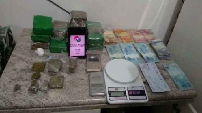 Questionado sobre a droga, o homem informou que iria fazer a entrega do entorpecente e que estava traficando pois estava passando por dificuldades financeiras. A PM foi então na casa dele e encontrou diversos tipos de drogas, mais dinheiro e até uma máquina de cartão de crédito.