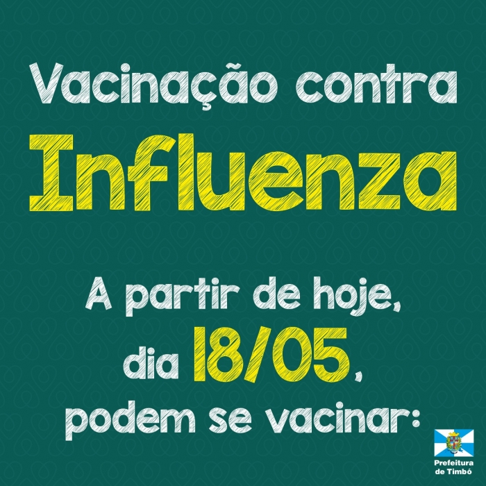 A partir de hoje, dia 18 de maio, mais dois grupos passam a ter direito à vacinação contra a Influenza, em Timbó.