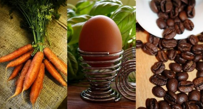 O jardineiro pediu a sua filha para se aproximar da cozinha e se sentar. Então, ele encheu três recipientes com água e colocou no fogo. Quando a água começou a ferver, colocou uma cenoura em um dos recipientes, um ovo no outro, e no terceiro alguns grãos de café.