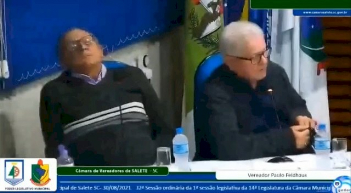 O vereador Pergentino Manarin (MDB), mais conhecido no município de Salete como "Nego", foi flagrado numa situação nada confortável. Durante sessão legislativa ordinária da Câmara Municipal de Salete, ocorrida na segunda-feira (30), o parlamentar foi filmado pela própria equipe de transmissão enquanto dormia em pleno horário regimental de expediente.