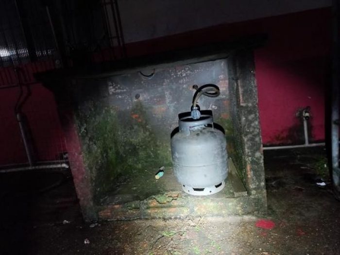 Chegando no local, um homem de 52 anos acompanhou a guarnição até o local onde ficava os botijões de gás nos fundos do estabelecimento comercial.