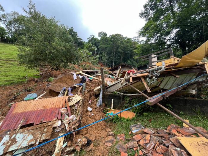 deslizamentos, quedas de árvores, destelhamentos e residências destruídas por