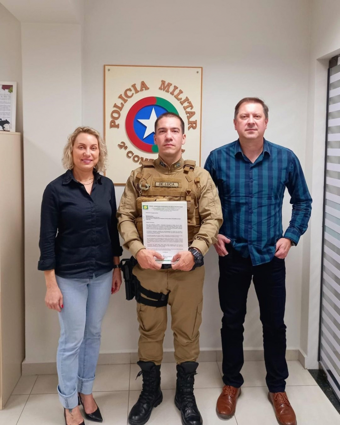 Em visita nesta segunda-feira (07), ao quartel da PM de Timbó, a Presidente da ACIMVI, Lúcia Giovanella da Silva e o Executivo, Humberto Klitzke, foram recebidos pelo Major PM Fábio Verdasca De Luca, Comandante da 2ª Companhia do 32º Batalhão de Polícia Militar (2ªCIA/BPM) de Timbó.